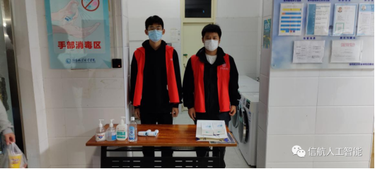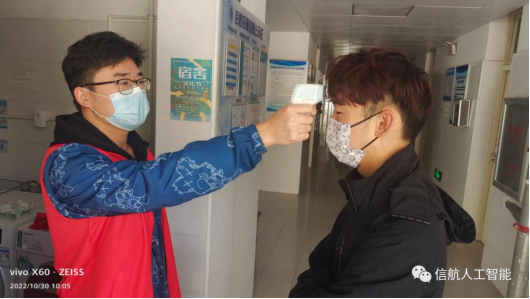 人工智能學院積極參加防疫工作,安排志愿者在宿舍門口和學校的大門口值班,每天都有值班人員,對于進出人員測量體溫,登記信息等。