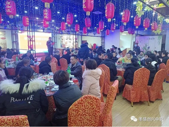 大會(huì)結(jié)束后,全體教職工前往“一家人酒店”參加團(tuán)拜會(huì)、共進(jìn)晚宴。團(tuán)拜會(huì)上董事長劉恩地發(fā)表了熱情洋溢的敬酒詞,校長向漢平宣布晚宴開始。集團(tuán)董事長劉恩地、執(zhí)行總監(jiān)孔健、董事劉園地為全體教職工派發(fā)年終獎(jiǎng)紅包。