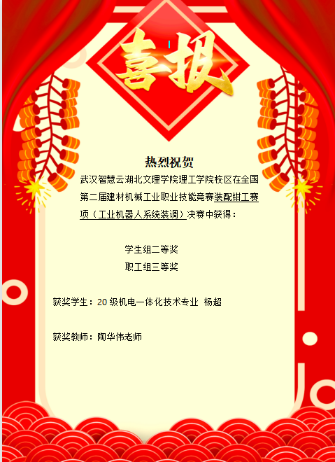 【喜報】熱烈祝賀智慧云湖北文理項目組榮獲“全國第二屆建材機械工業(yè)職業(yè)技能競賽”獎項